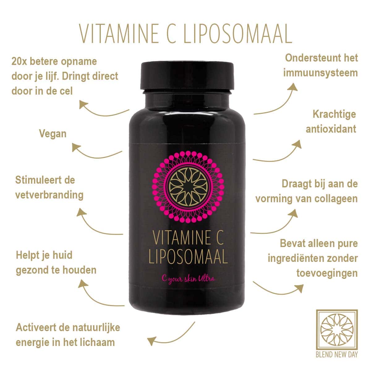 Wil jij de beste liposomale vitamine C kopen? Bij Blend New Day gebruiken we alleen natuurlijke ingrediënten. Door gebruik te maken van liposomen wordt dit supplement tot wel 20 maal beter opgenomen door jouw lichaam.